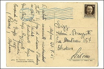 Vi saluto caramente, scrive un milite di stanza alla Magliana in una cartolina del 1943