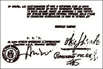 L'Italia di Bonelli. I tre pallini rossi indicano Corneliano d'Alba, Marsciano e la Magliana