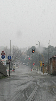 [] - Un albero carico di neve. Sotto, Viale Isacco Newton