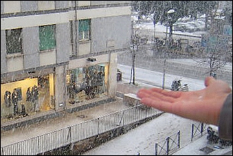 Una mano tesa per raccogliere la neve (p.le della Radio)