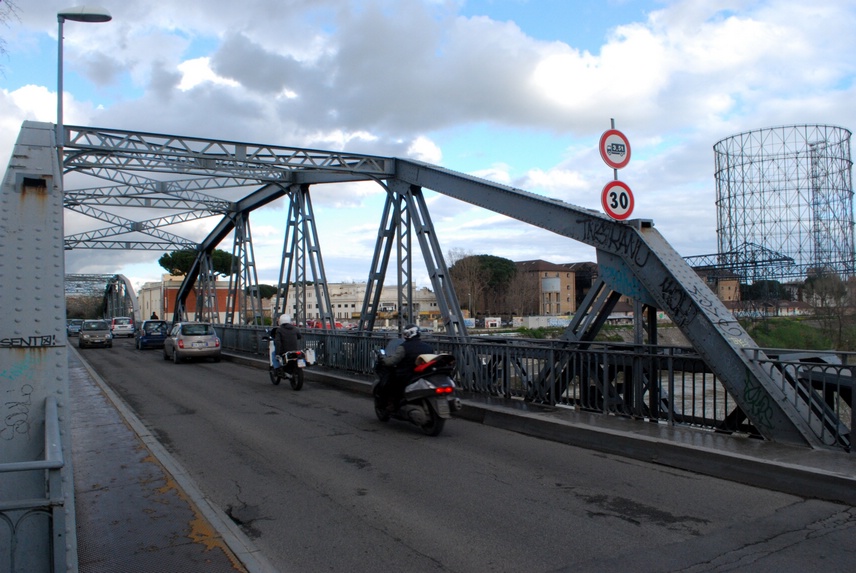 Titolo: Ponte di Ferro Autore: Silvio Galeano Sezione: Fotografia Genere: Architettura Anno: 2013 Luogo: Via Pacinotti, snc. Satellitare 41.871994, 12.471974. Soggetto: Ponte di ferro Ponte di ferro è un attraversamento sul Tevere, composto di una coppia di ponti affiancati: il ponte carrabile in acciaio e ghisa, e il ponte ferroviario in muratura. Il primo di essi, Ponte San Paolo (oggi Ponte dell’Industria), risale al 1863 su commessa di Pio IX e misura 131 × 7 m. Ha un impalcato in ghisa con elementi di acciaio, sotto il quale si aprono tre luci. La travata centrale è in origine apribile per il transito dei piroscafi diretti a Ripa Grande. Fino... Pubblicazione on line: 12/04/2013 Percorso esteso: http://www.arvaliastoria.it/public/011404.jpg Note d'uso: Puoi scaricare, esporre e modificare questa immagine senza farne un uso commerciale, indicando l'autore ("Foto di Silvio Galeano, Arvaliastoria.it") e, in caso di opera derivata, devi riportare ai terzi queste stesse condizioni d'uso. Leggi per intero la licenza Creative Commons BY-NC-SA Italia 3.0. Scheda collegata: 24 Collocazione archivistica: - Fondo: Archivio Storico Portuense