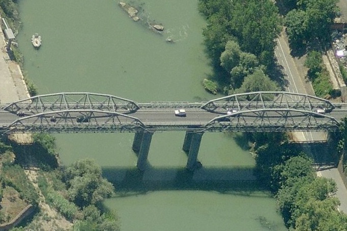 Titolo: Ponte di ferro (immagine aerea) Autore: Antonello Anappo Sezione: Mappa Genere: Pianta stradale Anno: 2007 Luogo: Via Pacinotti, snc. Satellitare 41.871994, 12.471974. Soggetto: Ponte di ferro Ponte di ferro è un attraversamento sul Tevere, composto di una coppia di ponti affiancati: il ponte carrabile in acciaio e ghisa, e il ponte ferroviario in muratura. Il primo di essi, Ponte San Paolo (oggi Ponte dell’Industria), risale al 1863 su commessa di Pio IX e misura 131 × 7 m. Ha un impalcato in ghisa con elementi di acciaio, sotto il quale si aprono tre luci. La travata centrale è in origine apribile per il transito dei piroscafi diretti a Ripa Grande. Fino... Pubblicazione on line: 26/09/2007 Percorso esteso: http://www.arvaliastoria.it/public/004877.jpg Note d'uso: Puoi scaricare, esporre e modificare questa immagine senza farne un uso commerciale, indicando l'autore ("Foto di Antonello Anappo, Arvaliastoria.it") e, in caso di opera derivata, devi riportare ai terzi queste stesse condizioni d'uso. Leggi per intero la licenza Creative Commons BY-NC-SA Italia 3.0. Scheda collegata: 24 Collocazione archivistica: - Fondo: Archivio Storico Portuense