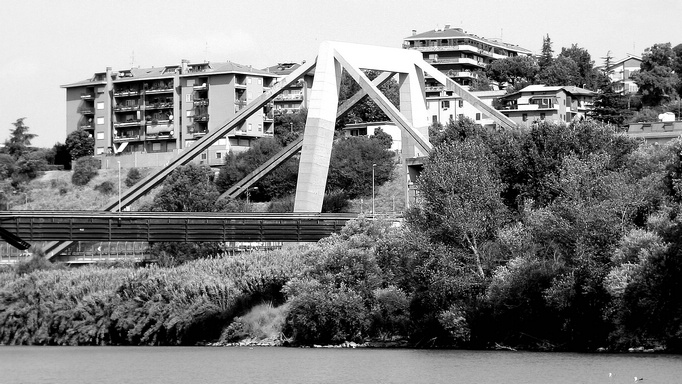 Titolo: Arvalia Autore: Antonello Anappo Sezione: Fotografia Genere: Architettura Anno: 2009 Luogo: Autostrada Roma-Fiumicino, snc. Satellitare 41.83396, 12.427994. Soggetto: Ponte Morandi Il Ponte Morandi è più antico ponte sospeso di Roma, e l’unico a tracciato curvilineo. Il 28 giugno 1965 una frana, il cui fronte è esteso circa 200 metri, investe l’Ansa della Magliana e il viadotto autostradale (640 m) allora in costruzione. Il progettista Riccardo Morandi - incaricato dall’ANAS di porvi rimedio - individua due possibili soluzioni: ricostruire il tratto rovinato, con un impalcato che poggia su terne di pali a grande profondità; oppure scavalcare interamente l’area della frana con un ponte sospeso ad unica luce. L’ANAS sceglie la seconda opzione, la più ambiziosa e fino ad allora mai tentata a Roma. Il ponte poggia le fondazioni (indicate nel disegno con i punti A ed E)... Pubblicazione on line: 31/01/2010 Percorso esteso: http://www.arvaliastoria.it/public/007901.jpg Note d'uso: Puoi scaricare, esporre e modificare questa immagine senza farne un uso commerciale, indicando l'autore ("Foto di Antonello Anappo, Arvaliastoria.it") e, in caso di opera derivata, devi riportare ai terzi queste stesse condizioni d'uso. Leggi per intero la licenza Creative Commons BY-NC-SA Italia 3.0. Scheda collegata: 164 Collocazione archivistica: - Fondo: Archivio Storico Portuense