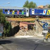 Titolo: Ponte ferroviario della Via Portuense - transito treni passeggeri Autore: Massimo Sclavo Sezione: Fotografia Genere: Architettura Anno: 2009 Luogo: Via Portuense (strada principale). Satellitare 41.862016, 12.452694. Soggetto: Portuense Portuense è la seconda delle sette sezioni urbanistiche del Municipio XI, di cui occupa il versante collinare alla sinistra della Via Portuense, nel tratto tra la Ferrovia Roma-Pisa e il fosso di Papa Leone (oggi interrato). I confini urbanistici disegnati nel 1977 comprendono solo una parte dell’Area storica portuense, termine con cui si indicano i due lati della Via Portuensis di epoca romana, “ab Janiculo ad mare”, cioè dalle pendici del Gianicolo in... Pubblicazione on line: 12/03/2010 Percorso esteso: http://www.arvaliastoria.it/public/008023.jpg Note d'uso: Puoi scaricare, esporre e modificare questa immagine senza farne un uso commerciale, indicando l'autore ("Foto di Massimo Sclavo, Arvaliastoria.it") e, in caso di opera derivata, devi riportare ai terzi queste stesse condizioni d'uso. Leggi per intero la licenza Creative Commons BY-NC-SA Italia 3.0. Scheda collegata: 44 Collocazione archivistica: - Fondo: Archivio Storico Portuense