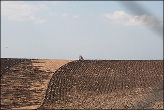 Scena di aratura meccanica. Si notino i gabbiani sulla terra appena rivoltata